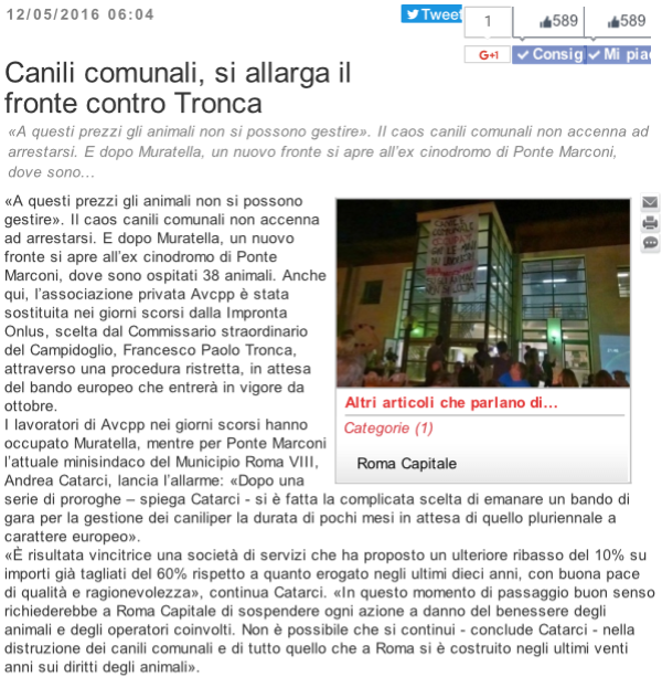 [...] # CANILI COMUNALI DI ROMA: ANAC, 15 ANNI DI ILLEGALITA’ [...]