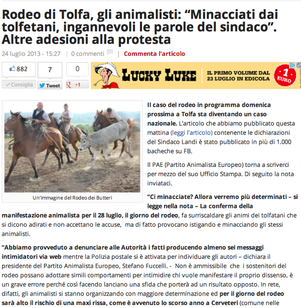 “NO AL RODEO CON IL VITELLO” DIFFIDATO IL SINDACO DI TOLFA, MOBILITATI GLI ANIMALISTI