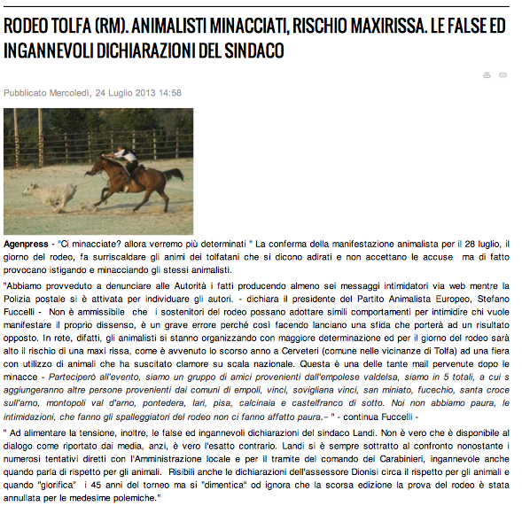 Testo ed indirizzi all’interno della pagina fb dell’evento “mail & phone bombing contro il rodeo di tolfa”