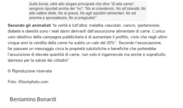 IL PARTITO ANIMALISTA EUROPEO DENUNCIO’ LA CAMPAGNA NAZIONALE FEDERCARNI-CONFCOMMERCIO: L’ANTITRUST CENSURA PER PUBBLICITA’ INGANNEVOLE