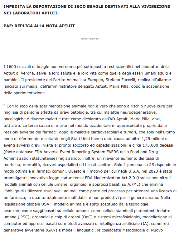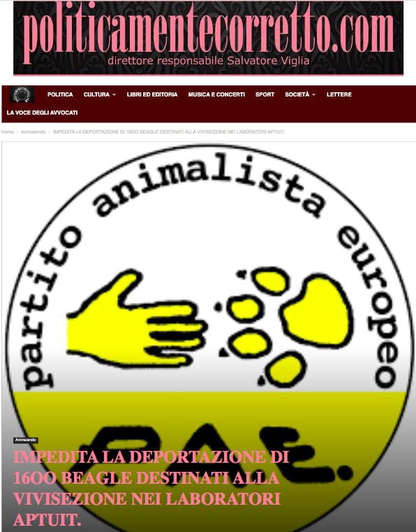 SPERIMENTAZIONE ANIMALE, VIVISEZIONE: SALVATI I 1600 CUCCIOLI DI BEAGLE, VINTA LA BATTAGLIA CONTRO I LABORATORI APTUIT DI VERONA no comments »Comments are closed.